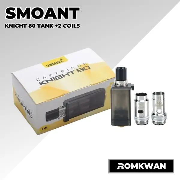 หัวพอต บุหรี่ไฟฟ้าที่ออกแบบมาสำหรับใช้งานกับพอต Knight 80 เป็นพอตที่ได้รับความนิยมมากๆของแบรนด์ผู้ผลิตอุปกรณ์เกี่ยวกับบุหรี่ไฟฟ้าที่มีชื่อเสียงอย่าง Smoant ผลิตจากวัสดุประเภทพลาสติก PCTG ดริปทิปขนาด 510 สามารถบรรจุน้ำยาบุหรี่ไฟฟ้าได้ 4ml. เป็นระบบการเติมที่ด้านบน มาพร้อมคอยล์ 2 ตัวได้แก่ Knight 80 Dual Mesh ขนาด 0.4 โอห์ม และ Knight 80 Mesh ขนาด 0.3 โอห์มติดตั้งมาให้ในหัวพอต นอกจากนี้ยังใช้งานกับคอยล์ RBA และ Pasito ได้อีกด้วย