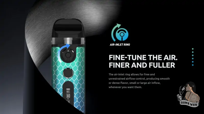 - กำลังไฟ อยู่ที่ 5-30 W สามารถใช้ได้ทั้ง น้ำยา ฟรีเบส และ น้ำยา ซอลนิค แต่ที่เหมาะที่สุด จะเป็นน้ำยา Salt nic