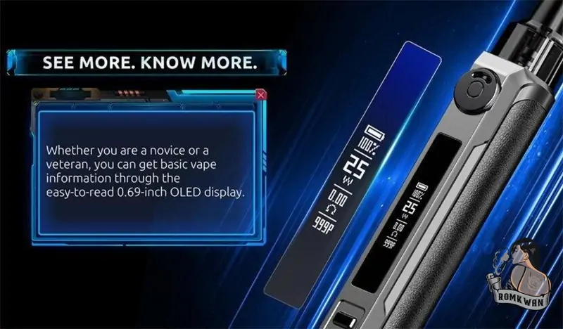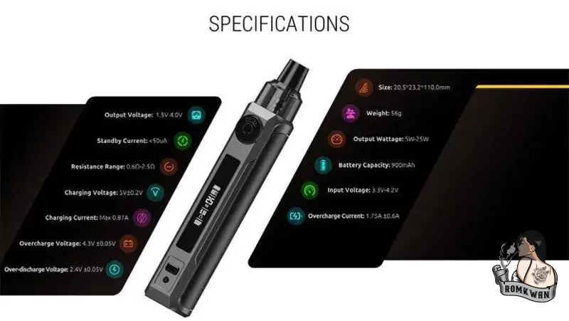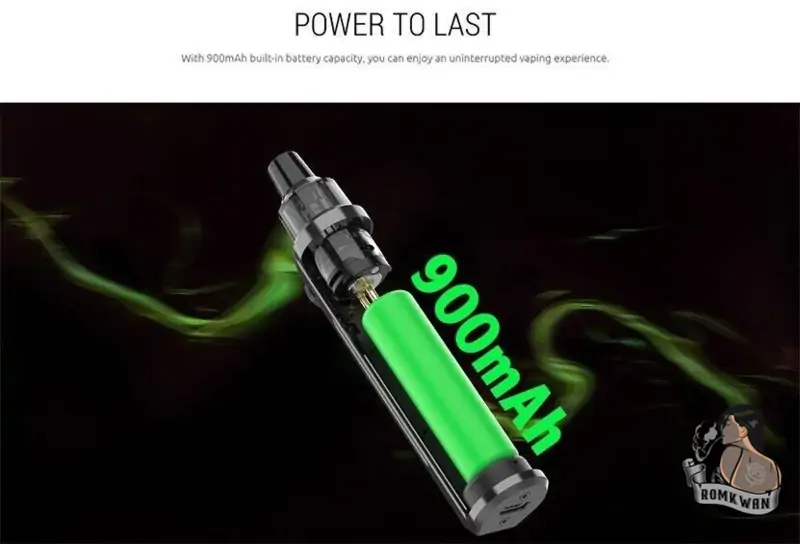 พอตมีรูปร่างเพรียวบางและกะทัดรัด และมีสไตล์ ใช้พลังงานจากแบตเตอรี่ที่ให้มากับตัวเครื่องถึง 900mAh สามารถปรับได้ 5W-25W มีวงซิลิโคน 3 วงบนคอยส์ ป้องกันการรั่วซึมได้เป็นอย่างดี หัวพอตสามารถเก็บน้ำยาได้ 2 มล. สามารถหมุนได้ 360 องศา มีหน้าจอ OLED ขนาด 0.69 นิ้วเพื่อแสดงข้อมูลการสูบไอต่างๆ พอตมีมาให้เลือกทั้งหมด 4 สีด้วยกัน และเข้ากันได้กับคอยส์ LP1