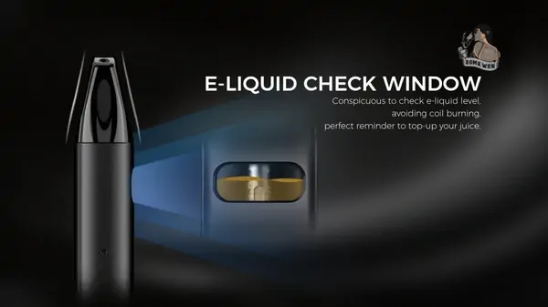 เป็นการพัฒนาที่ก้าวกระโดดมากที่ทำช่องสำหรับดูปริมาณน้ำยาที่มีขนาดใหญ่เอาไว้ข้างหน้าของตัวเครื่องเลย โดยมันอยู่ในตำแหน่งที่เราจะเห็นได้อัติโนมัติในทุกๆครั้งที่หยิบเครื่องขึ้นมาสูบ โดยที่เราไม่จำเป็นต้องดึงหัวแทงค์ออกมาดู ซ้ำแล้วซ้ำอีก จะช่วยให้หมดปัญหาเรื่องคอยล์ไหม้เพราะลืมเติมน้ำยาเหมือนรุ่นเก่าๆ ช่องที่เจาะมาเพื่อให้เห็นน้ำยา ไม่เพียงแต่นำความสะดวกสบายมาให้เท่านั้น แต่มันยังทำให้รูปลักษณ์โดยรวมเท่ห์ขึ้นอีกด้วย