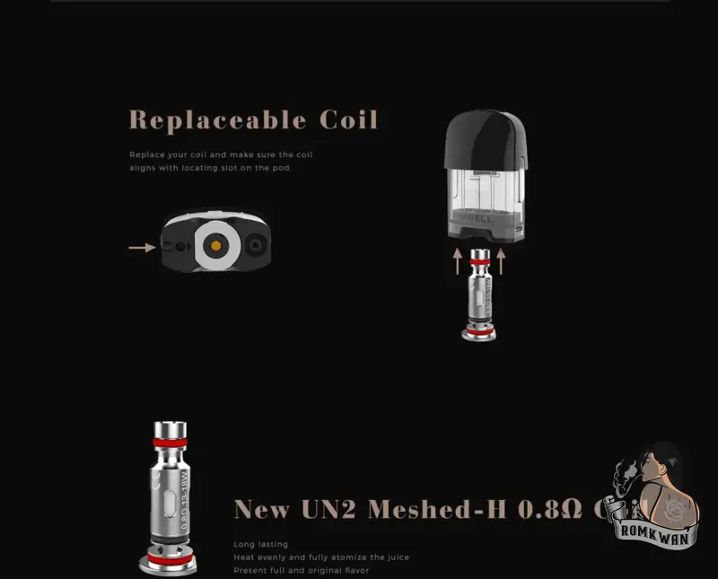 - 0.8Ω Mesh Coil เพื่อให้ความร้อนยาวนานและสม่ำเสมอและนำเสนอรสชาติที่สมบูรณ์และเป็นต้นฉบับ