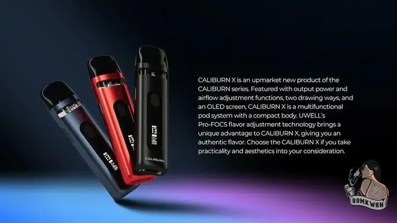 ทาง Uwell ได้เปิดตัวคาริเบิร์นรุ่นใหม่มีชื่อว่า Caliburn X ซึ่งเป็นพอตไฟฟ้าแบบมัลติฟังก์ชัน โดยสามารถปรับไฟได้ตั้งแต่ 5 – 20 วัตต์ มาพร้อมกับหน้าจอ OLED ที่ใช้งานง่าย ที่ด้านข้างของตัวเครื่องมีช่องสำหรับปรับการไหลเวียนของอากาศโดยเฉพาะ โดยไม่จำเป็นต้องถอดหัวแทงค์ออก ส่วนหัวแทงค์มีพร้อมกับความจุ 3 ML และยังสามารถใช้คอยล์รุ่นเดียวกับ Caliburn G2 ได้