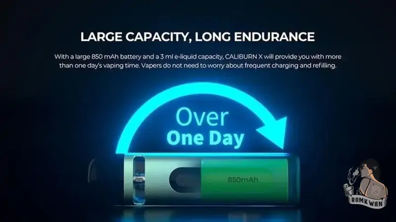 การใช้งานจะยาวนานขึ้นกว่าเดิม เพราะ แบตเตอรี่ใหม่ความจุมากถึง 850 mAh พร้อมทั้งสามารถจุน้ำยาได้สูงถึง 3 ML ต่อการเติมน้ำยาหนึ่งครั้ง ซึ่งเพียงพอต่อการใช้งานภายใน 1 วันเต็มๆ