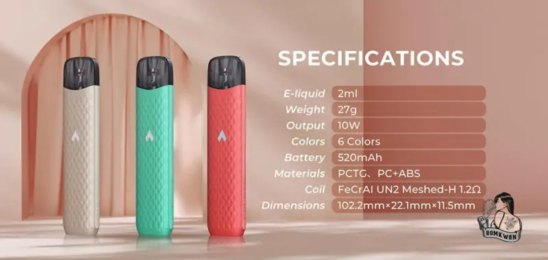 บุหรี่ไฟฟ้าที่มีแบตเตอรี่ในตัวแบบชาร์จไฟได้ 520mAh บรรจุน้ำยาได้สูงสุด 2mL มาพร้อมกับคอยล์ 1.2ohm ตัวเครื่องทำจากวัสดุ PC ที่ทนทาน น้ำหนักเบาและพกพาสะดวก จับกระชับมือ สามารถชาร์จผ่านพอร์ต microUSB ที่ด้านล่างของตัวเครื่อง คอยล์ 1.2ohm ที่ให้มาให้รสชาติและควันที่เหนือชั้นจากน้ำยาบุหรี่ไฟฟ้า Saltnic ที่คุณชื่นชอบแน่นอน บุหรี่ไฟฟ้า นั้นใช้งานง่ายและเป็นผลิตภัณฑ์ที่เหมาะสำหรับมือใหม่