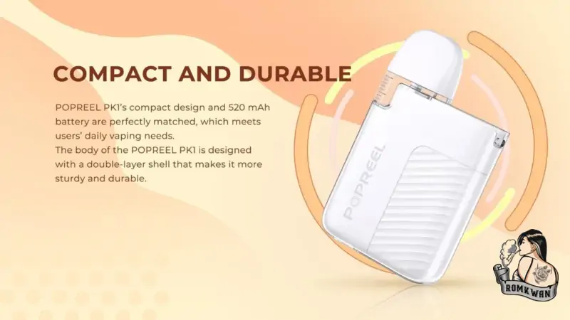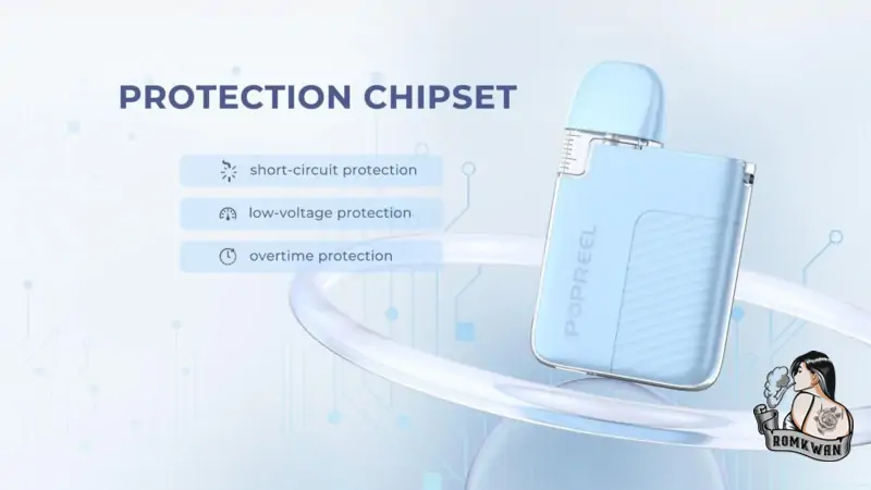 Uwell Popreel PK1 Kit มีขนาดกะทัดรัด ทนทาน และพกพาสะดวก แบตเตอรี่ 520mAh ในตัวพร้อม กำลังวัตต์ 13W มีสายคล้องพอตในกล่องแพ็คเกจ สามารถใช้เป็นเครื่องประดับแฟชั่นได้ มีชิปอัจฉริยะในตัว มีการป้องกันไฟฟ้าลัดวงจร/แรงดันต่ำ/การทำงานล่วงเวลาเพื่อรับประกันการใช้งานอย่างปลอดภัย